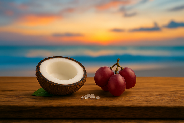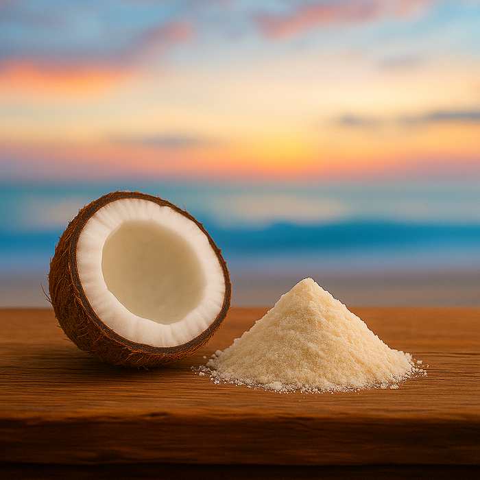 Coconut water provides natural electrolytes and glucose, supporting glycogen replenishment and rehydration. Paired with stevia, it delivers energy without spiking blood sugar.