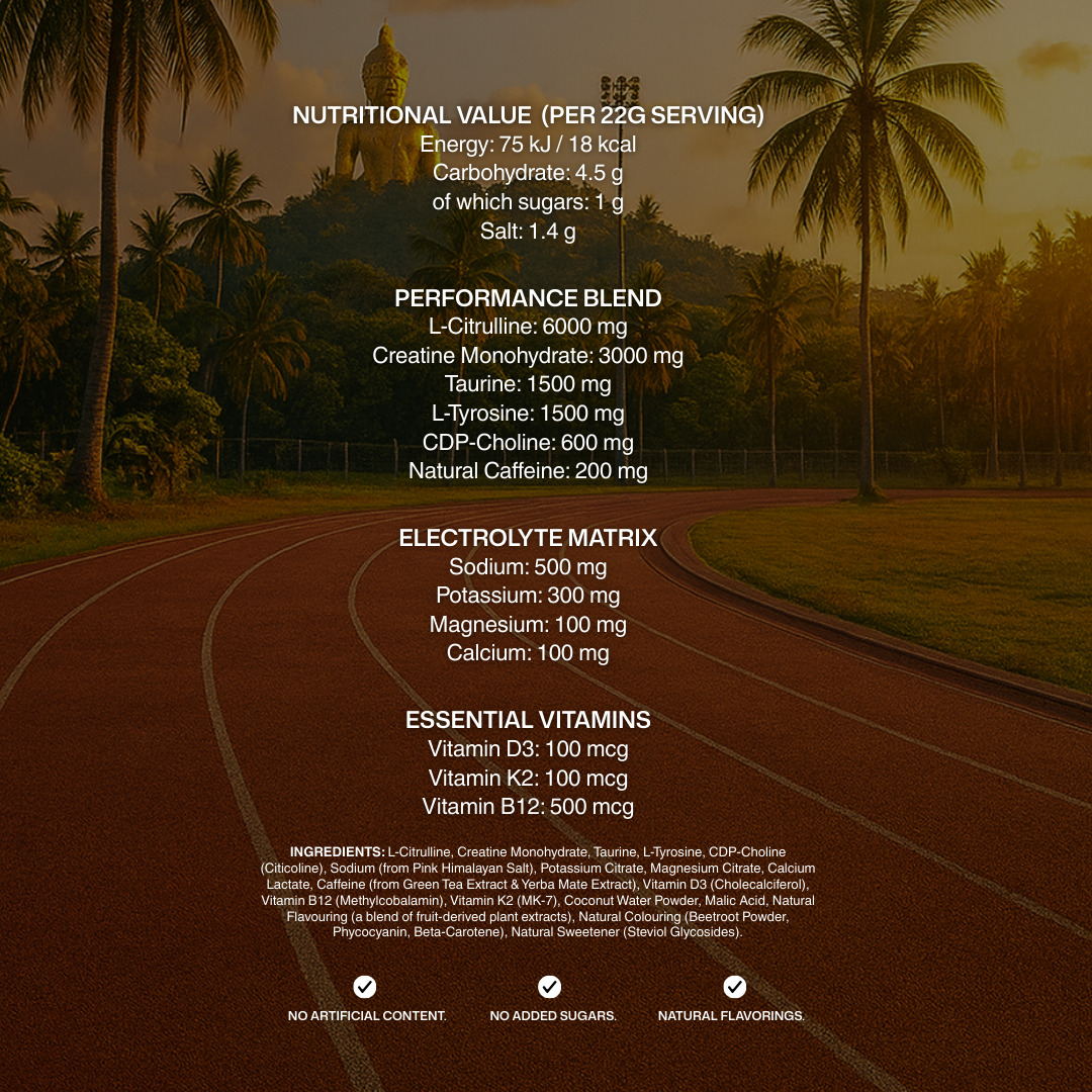 This formula is built exclusively on ingredients that have been validated by peer-reviewed research in exercise physiology, sports science, and clinical nutrition. Each component has been selected based on its proven role in improving hydration, performance, energy metabolism, or recovery.